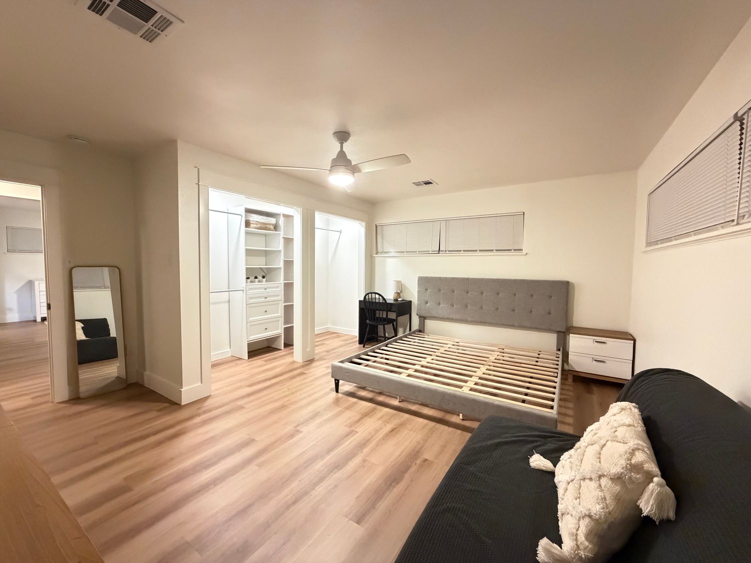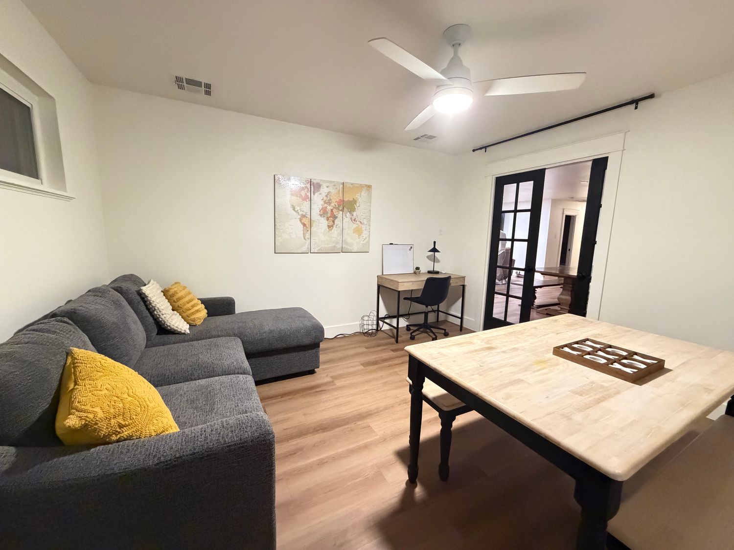 The primary dwelling offers 2351 sqft with three sleeping areas, two and a half modern bathrooms, plus an adaptable room perfect for an office or bonus space. It includes a utility/entry area off the two-car garage and a nice private fenced in backyard suitable for pets and little ones!