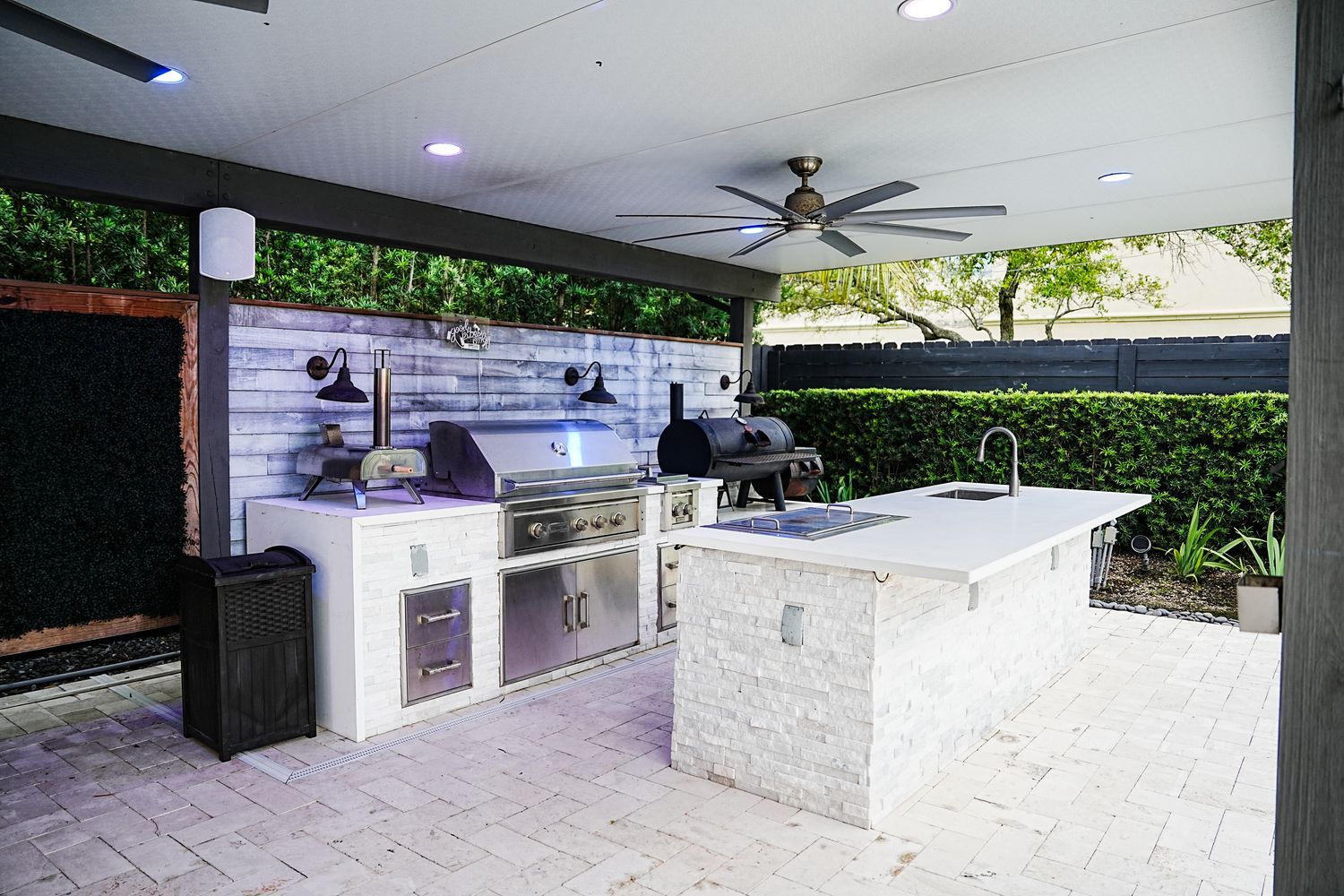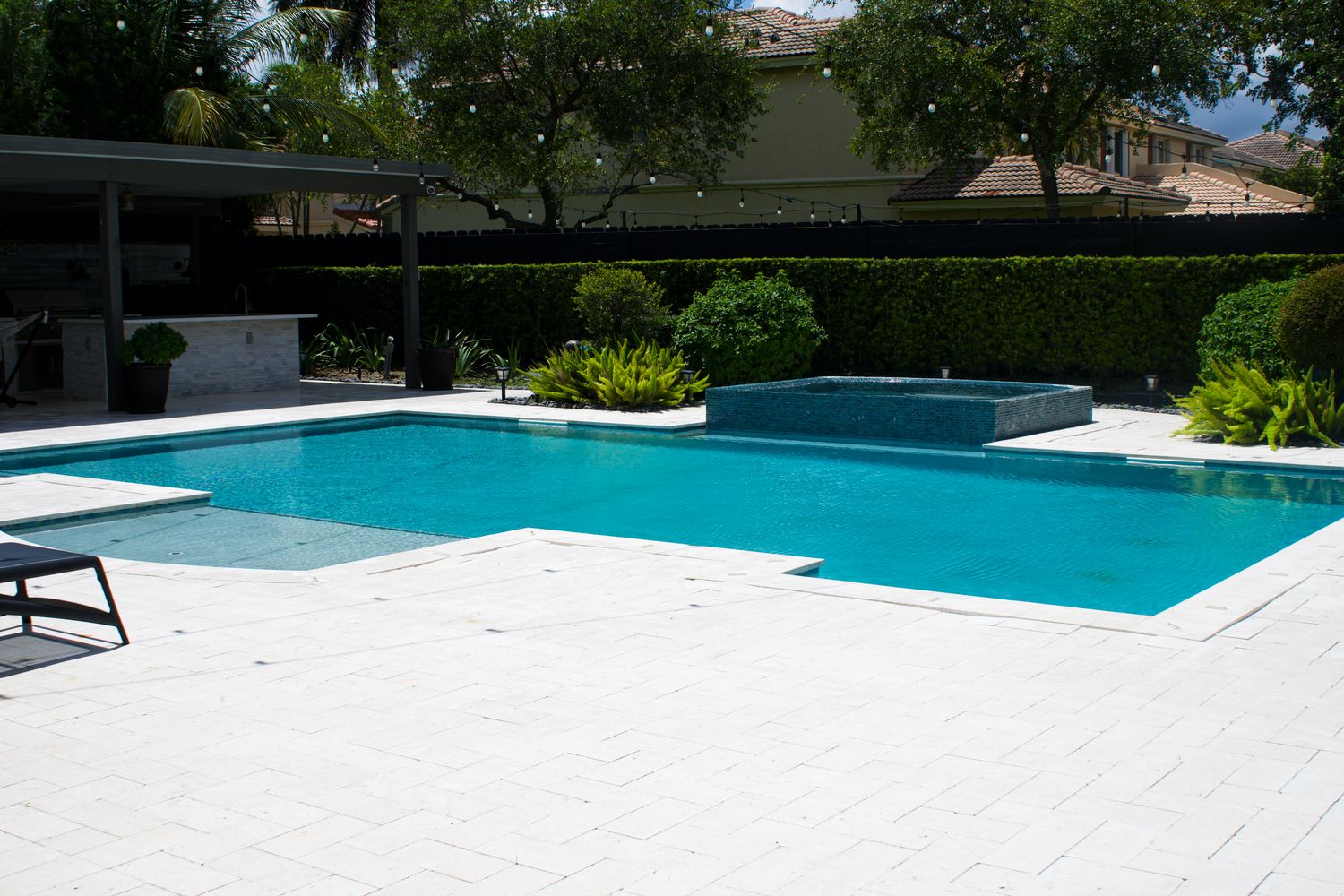 Welcome to your dream home! This stunning 5 bedroom, 6 full bathroom residence offers over 3,600 sq. ft. of luxury living on a beautifully landscaped, semi-private 1/5 acre lot. From the moment you step inside, youre greeted by a grand two-story foyer that flows seamlessly into an open-concept living space filled with natural light from expansive windows and double glass doors. Outdoor living is at its finest here, relax by the oversized pool and jacuzzi with electric heater, entertain under the covered and screened lanai, or host unforgettable gatherings in the full outdoor kitchen, complete with a wet bar, grill, smoker, hibachi, and beverage fridge. The travertine-tiled patio, ambient string lighting, and convenient poolside full bathroom make this backyard the ultimate retreat. A fully turfed side yard and sprinkler system keeps maintenance effortless. Upstairs, youll find three spacious bedrooms each with en-suite baths and walk-in closets, plus a grand primary suite featuring an expansive walk-in closet and a spa-inspired bath with soaking tub, rain shower, and bidet. A versatile fifth bedroom with full bath on the first floor makes the perfect guest room or home office. The two-car garage offers abundant storage and the flexibility for a home gym, along with a whole-home water filtration system, 220V EV charging outlet, and smart home upgrades including ethernet wiring in every room and smart light switches. For peace of mind and efficiency, this home is equipped with impact windows and doors, a fully paid-off solar system, and dual Tesla Powerwalls. With thoughtful design inside and out, this property is truly a slice of paradise you wont want to miss.